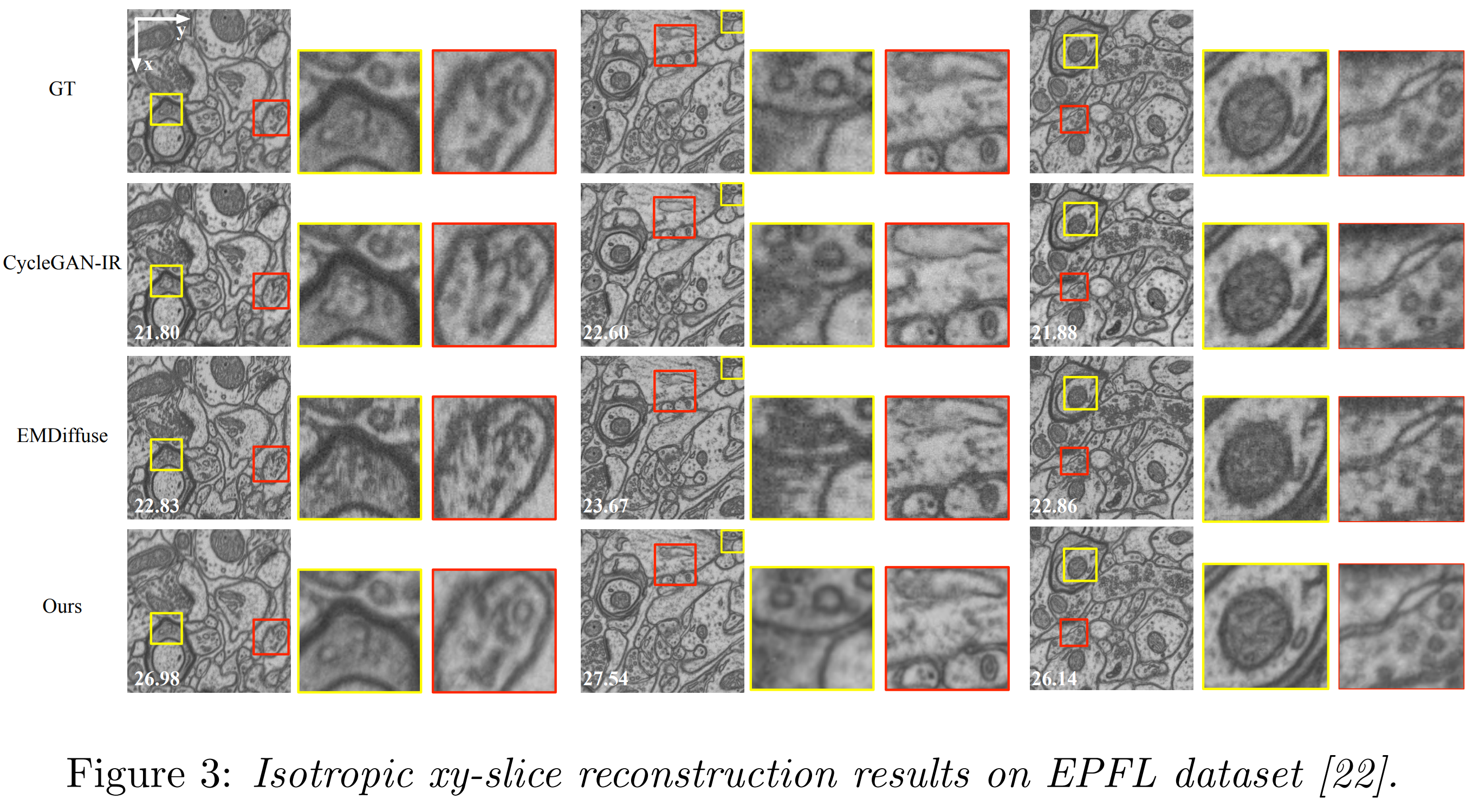 Without pretraining on large-scale datasets, EMGauss reconstruct the whole 3D volumefrom input sparse slices in 0.5h.