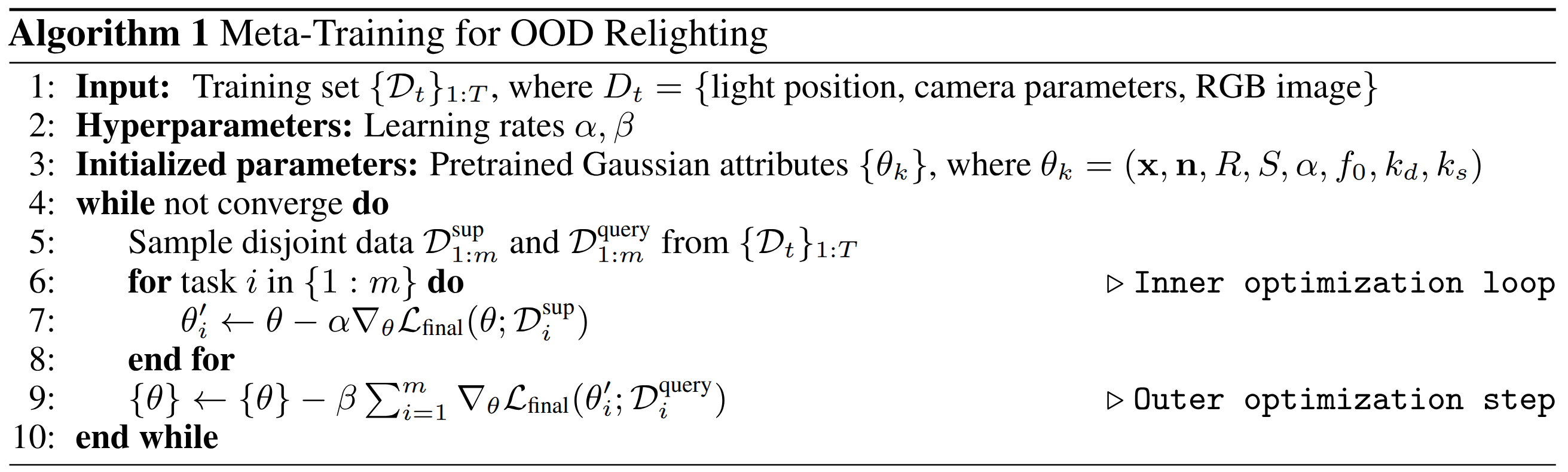 Existing 3D relighting methods exhibit performance degradation when handling out-of-distribution relighting, primarily due to overfitting lighting patterns to perspective-constrained observations, resulting in producing unreasonable lighting components (such as wrong specular and shadows). To address this, we draw insights from MAML [1] and introduce a meta-learning framework based on bilevel optimization, which has been shown to effectively bridge the distribution shift between the training and testing domains, facilitating the generalization of optimized variables to unseen scenarios [2].
